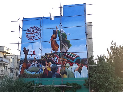دیوارنگاره "غدیر" درمحله مینودر قزوین رونمایی شد