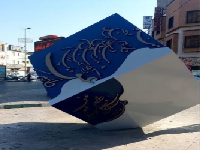 رنگآمیزی و پاکسازی المان مکعب خوشنویسی چهارراه ولیعصر توسط سازمان زیباسازی شهرداری قزوین